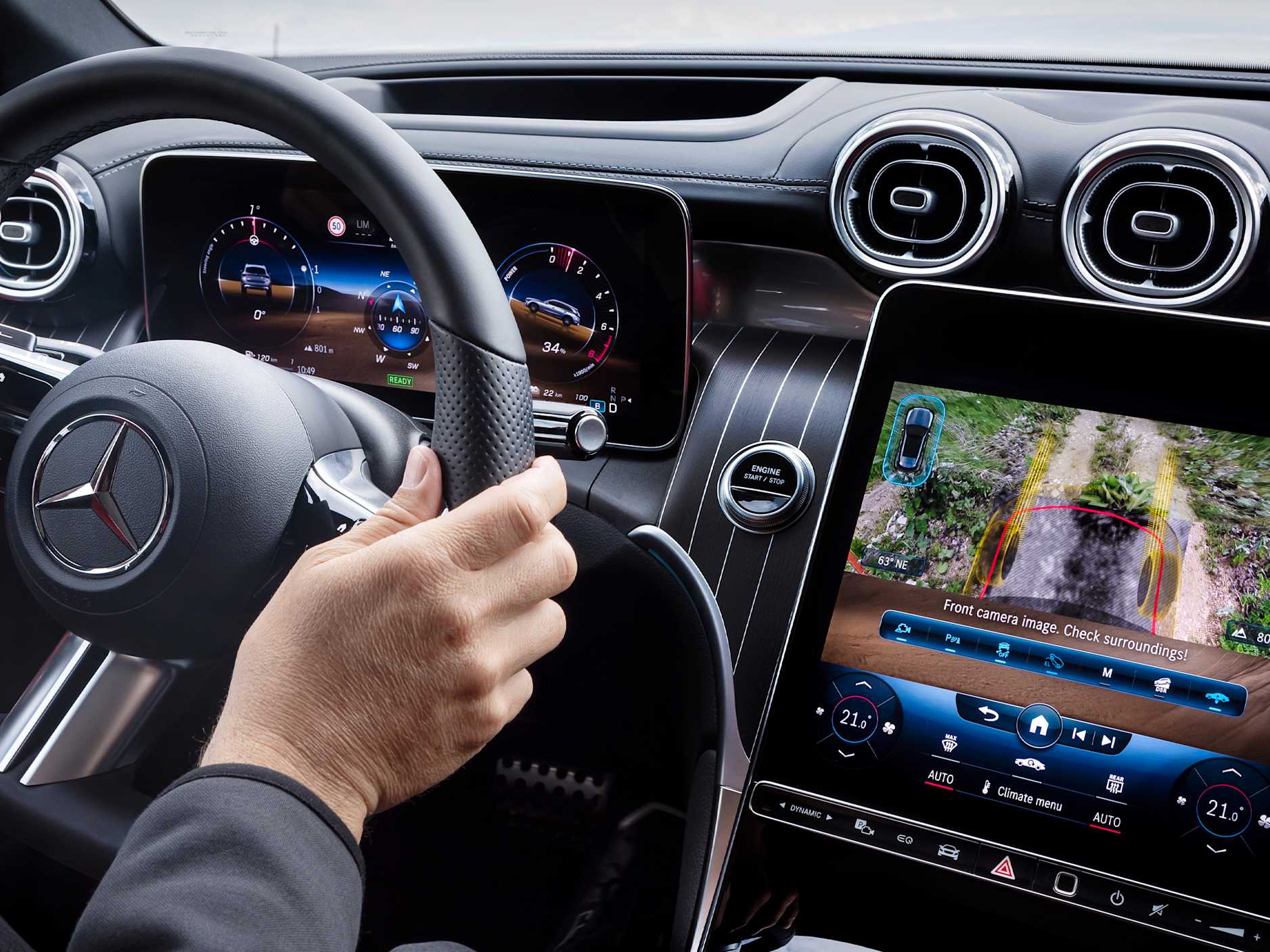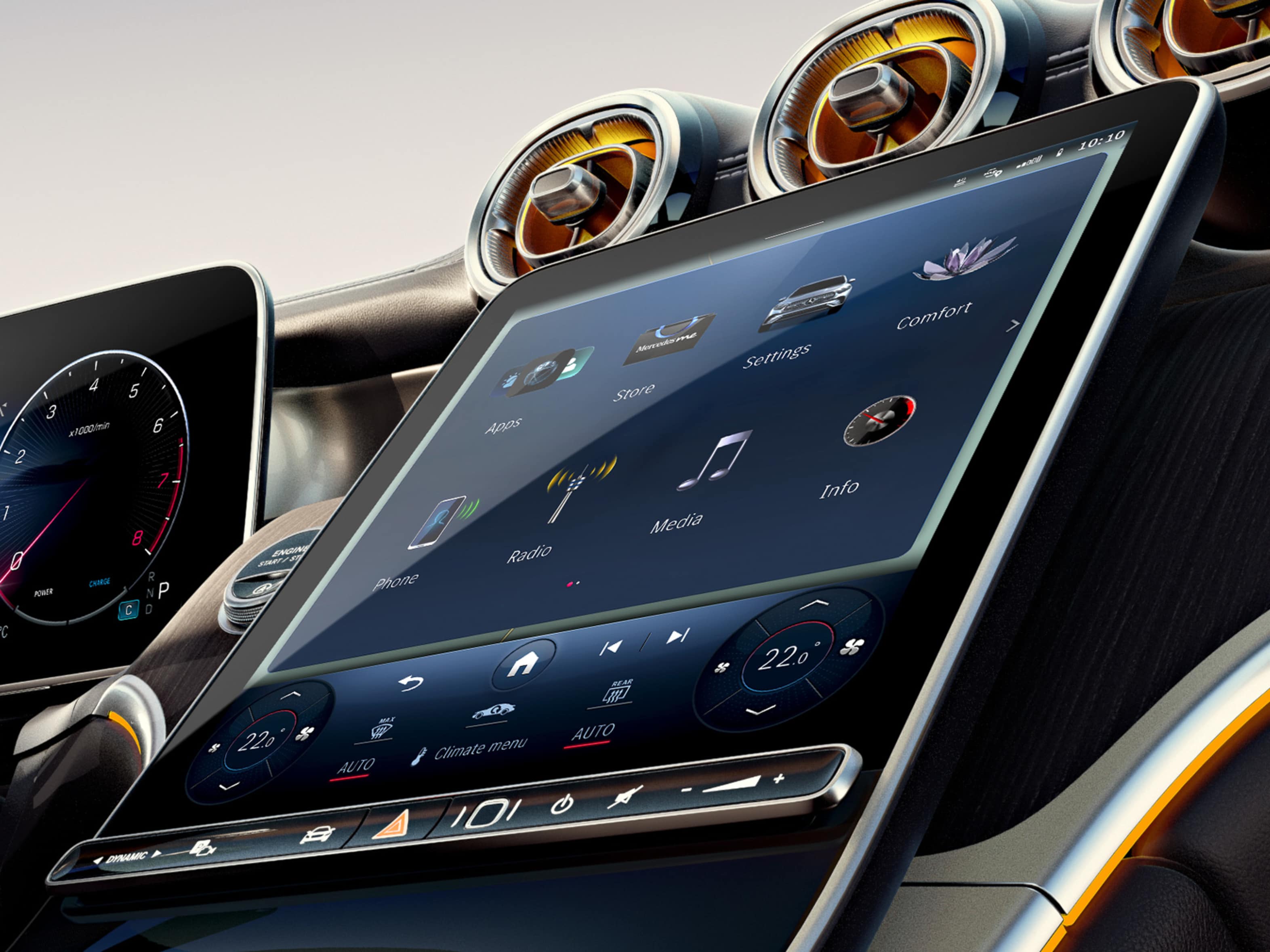 [10]Komponente označene sa * su digitalni dodaci. Za korišćenje usluga digitalnih dodaka potreban je lični Mercedes me ID i saglasnost sa uslovima korišćenja usluga digitalnih dodaka. Pored toga, odgovarajuće vozilo mora biti upareno sa korisničkim nalogom. Nakon isteka početnog roka od tri godine, usluge se mogu obnoviti uz naknadu, pod uslovom da su u tom trenutku i dalje ponuđene za odgovarajuće vozilo. Prva aktivacija usluga je moguća u roku od jedne godine od početne registracije ili početnog korišćenja od strane kupca, šta god nastupi prvo. Povezivanje komunikacionog modula sa mrežom mobilne telefonije, uključujući sistem za hitne pozive marke Mercedes-Benz, zavisi od odgovarajuće pokrivenosti mreže i dostupnosti mrežnih operatera.