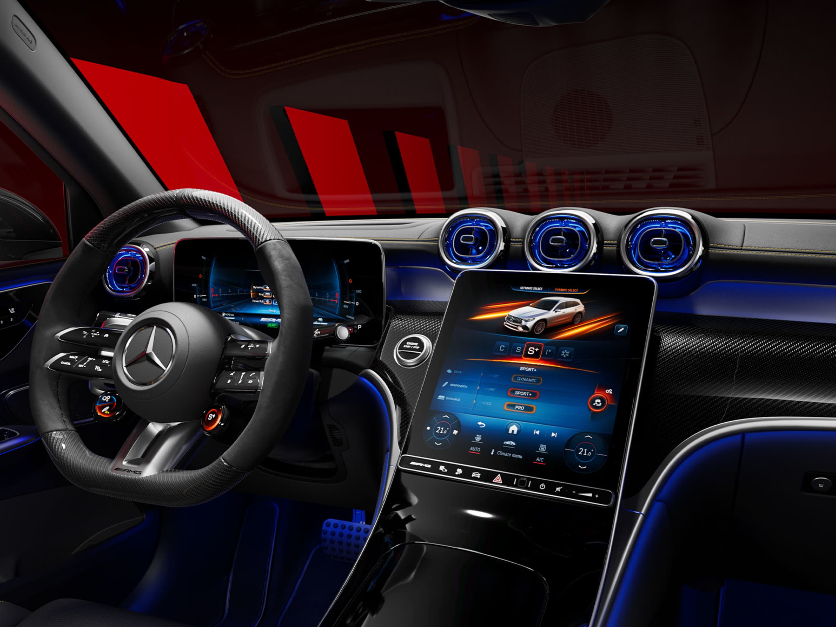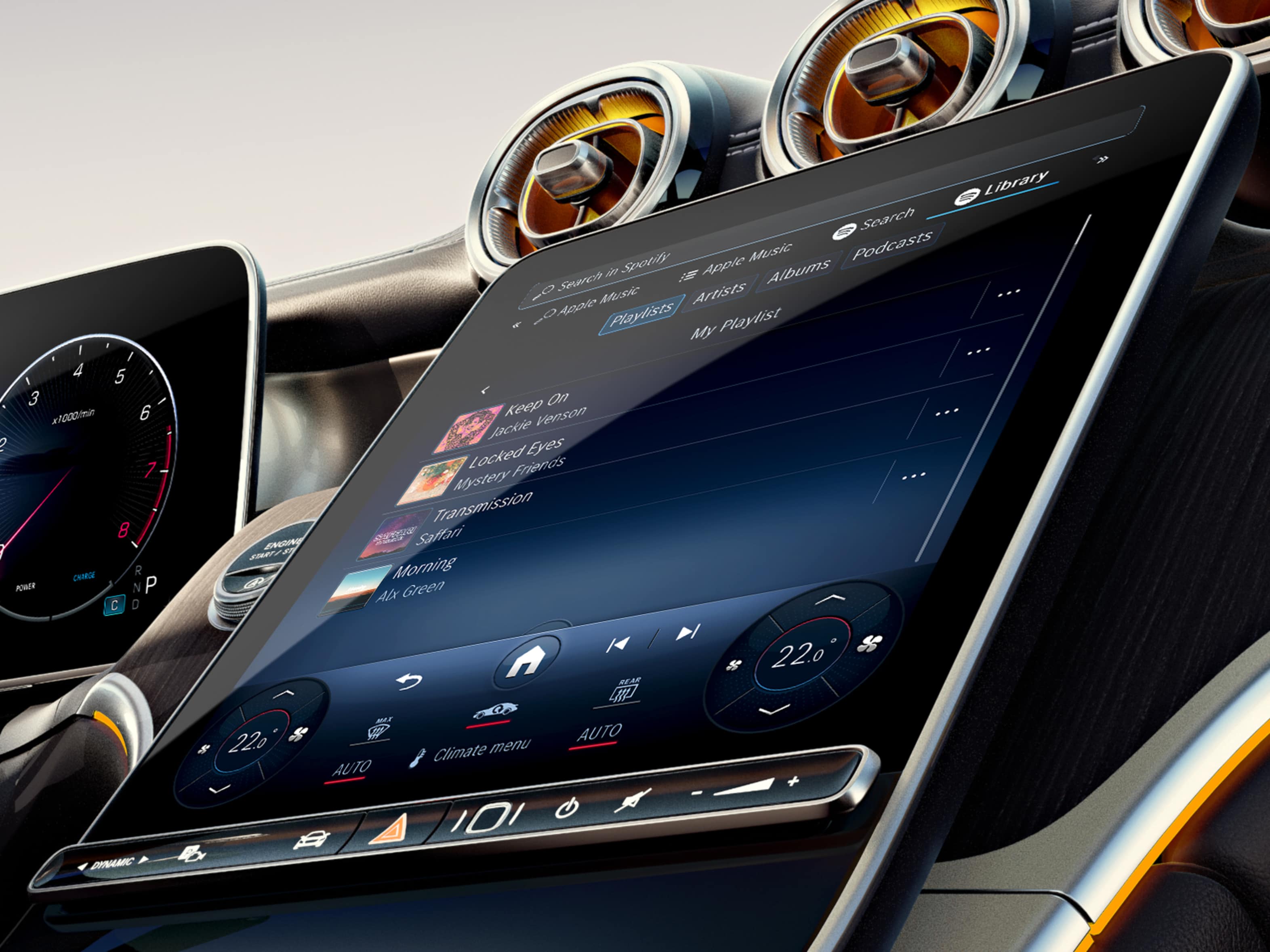 [3]Ovaj digitalni dodatak je dostupan za vozila opremljena MBUX multimedijalnim sistemom. Za njegovo korišćenje potreban je aktivan Mercedes-Benz korisnički nalog. Vozilo mora biti upareno sa korisničkim nalogom i usluga „Online Music“ mora biti aktivirana. Takođe mora biti dostupan nalog kod provajdera strimovanja da biste koristili uslugu. Takođe mora biti kupljena posebna količina podataka od eksternog provajdera mobilne telefonije da biste koristili uslugu, na primer, putem usluge „Internet u automobilu“.